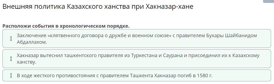 внешняя политика казахского Ханства при Хакназаре хане.Расположи события в хронологическом порядке.
