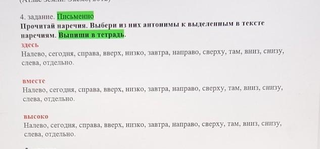 Прочитай наречия. Выбери из них антонимы к выделенным в тексте