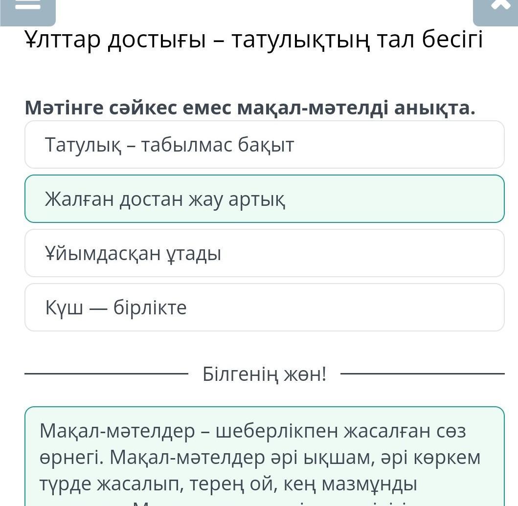 Мәтінге сәйкес емес мақал-мәтелді анықта.