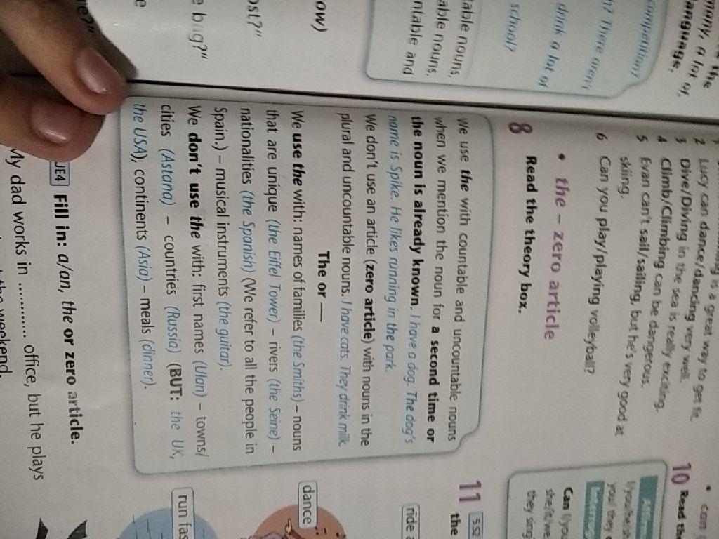 ты отправила правила которые надо выучить, the мы используем с людьми или вещами которые мы видели и указываем на кого или что, а) a an мы используем с не точностью, то есть мы этот предмет знаем но не указываем