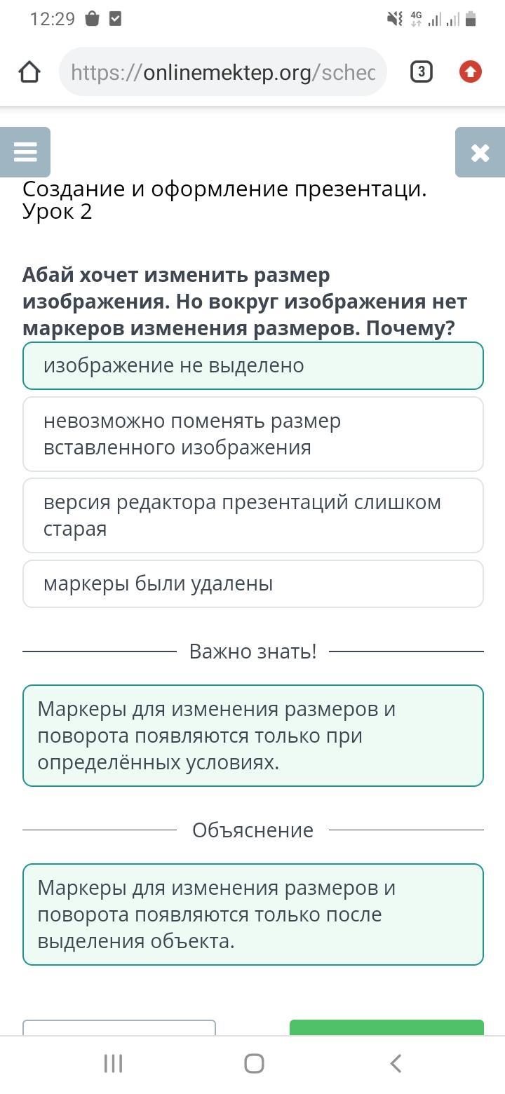 Абай хочет изменить размер изображения. Но вокруг изображения нет маркеров