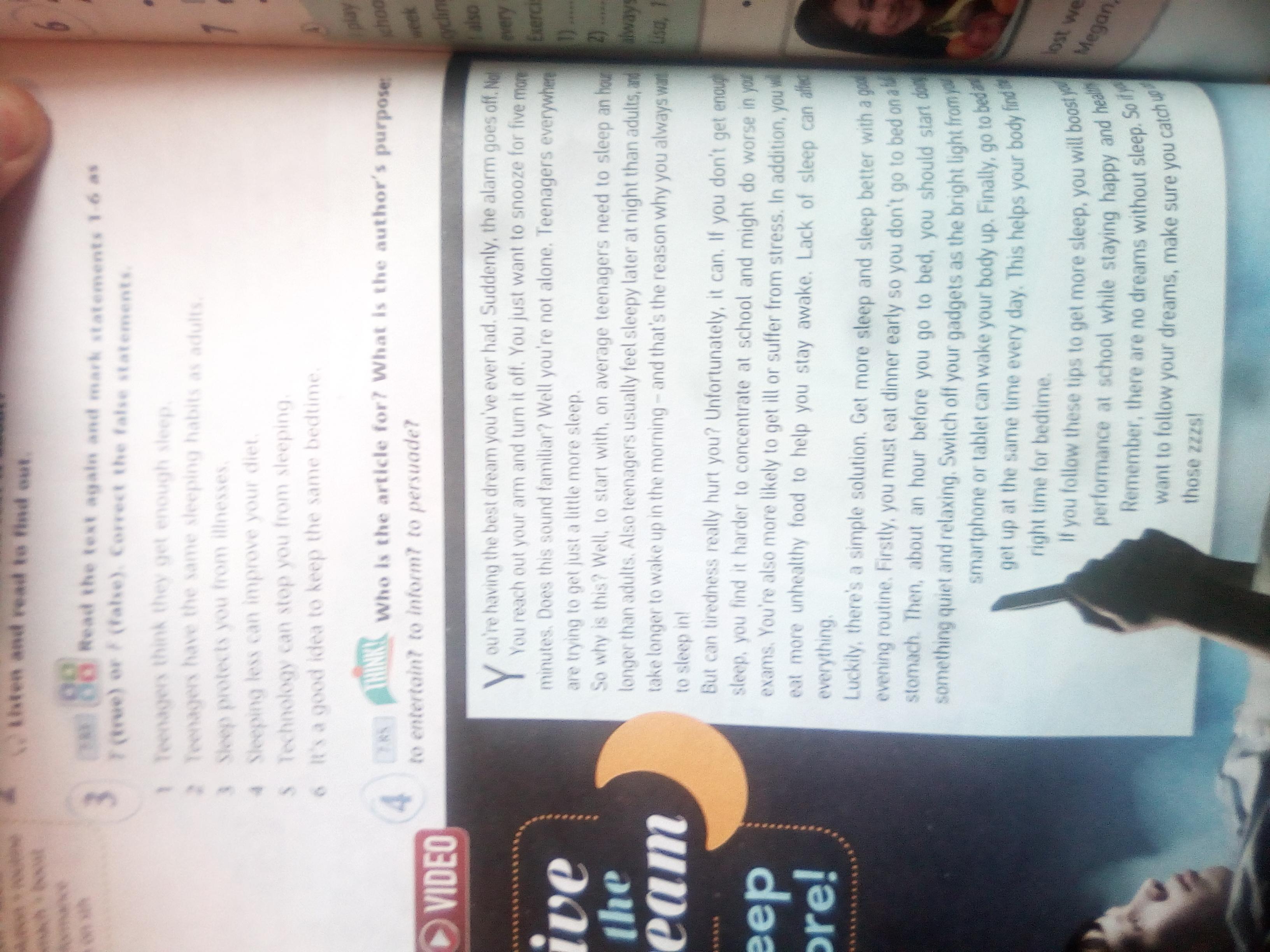 1. False (Teenagers everywhere are trying to get just a little more sleep)