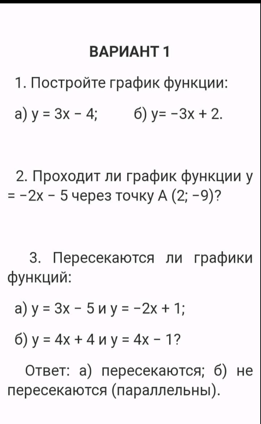 Графики функций y = 3x - 5 и y = -2x + 1 пересекаются.