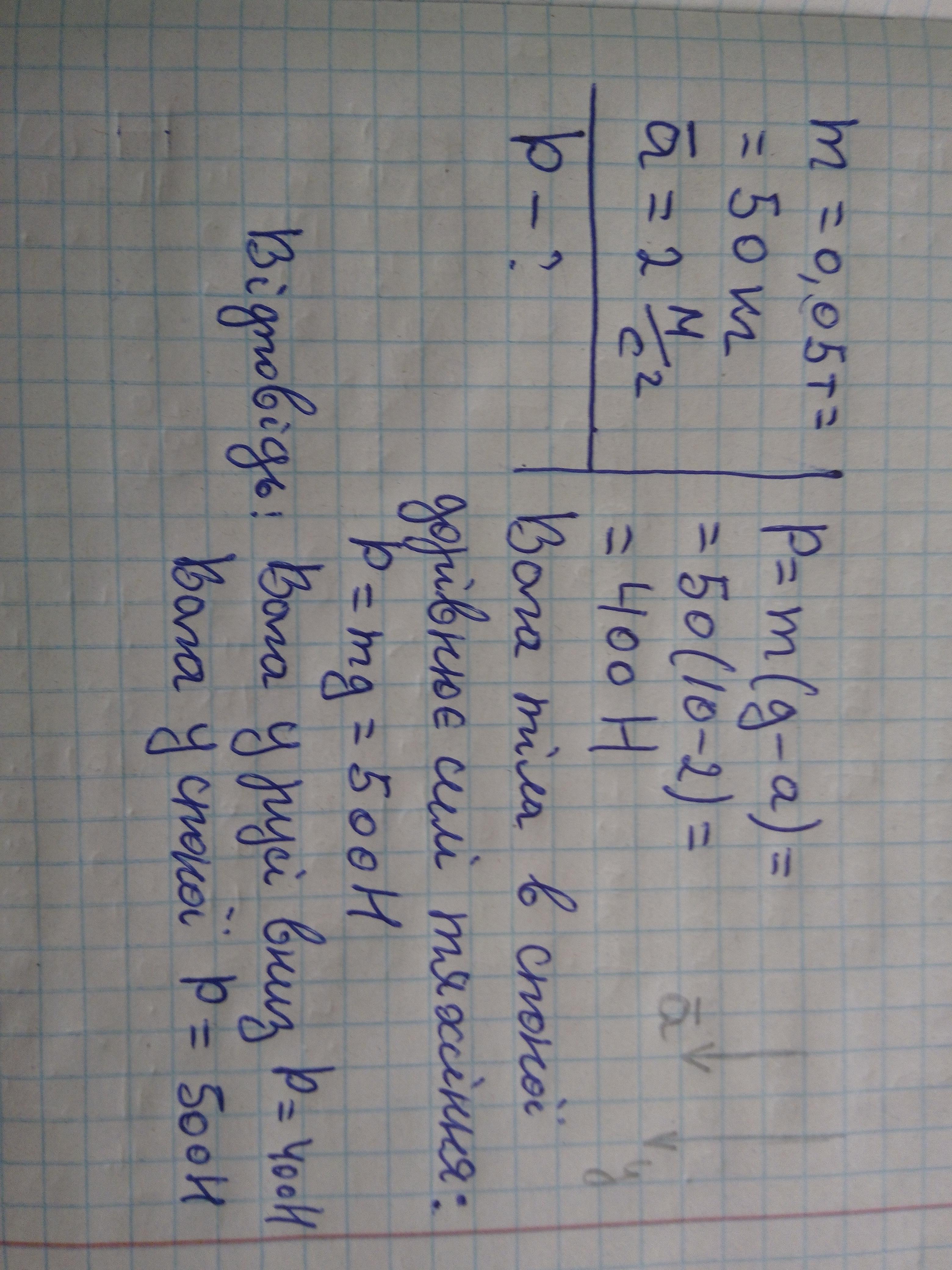 На підлозі ліфта лежить вантаж масою 0,05т. Ліфт починає рухатися з прискоренням 2м/см(квадраті) вниз. Яка ваша тіла в спокої і під час руху.