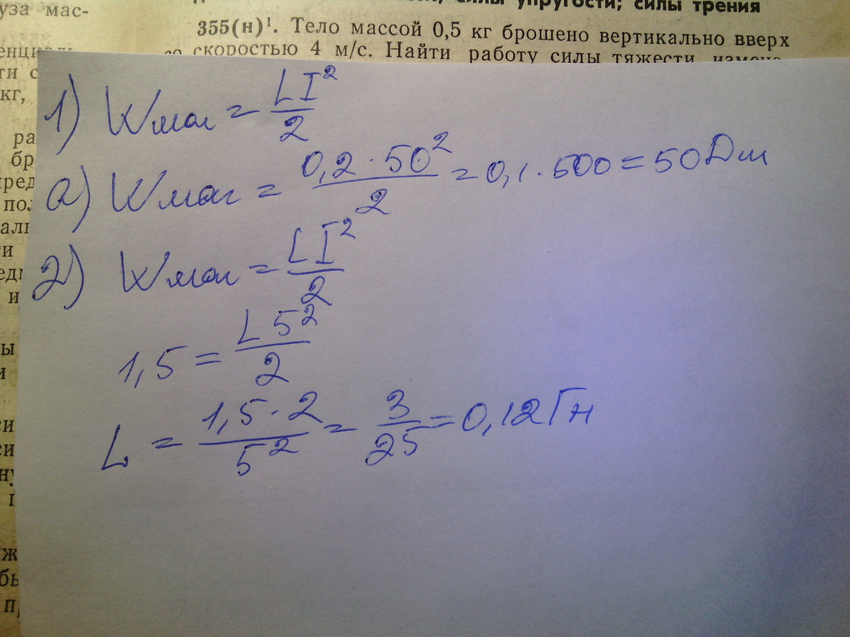 1)W=L*I^2/2=0,2Гн*50^2/2=250Дж