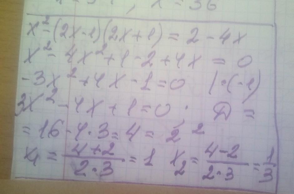 Розвяжіть рівняння: х²-(2х-1)(2х+1)=2-4х​