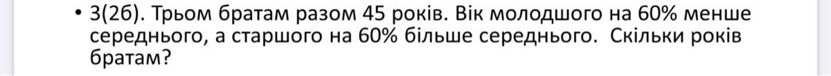 Нехай другому брату х, тоді першому х-3/5, а третьому х+3/5