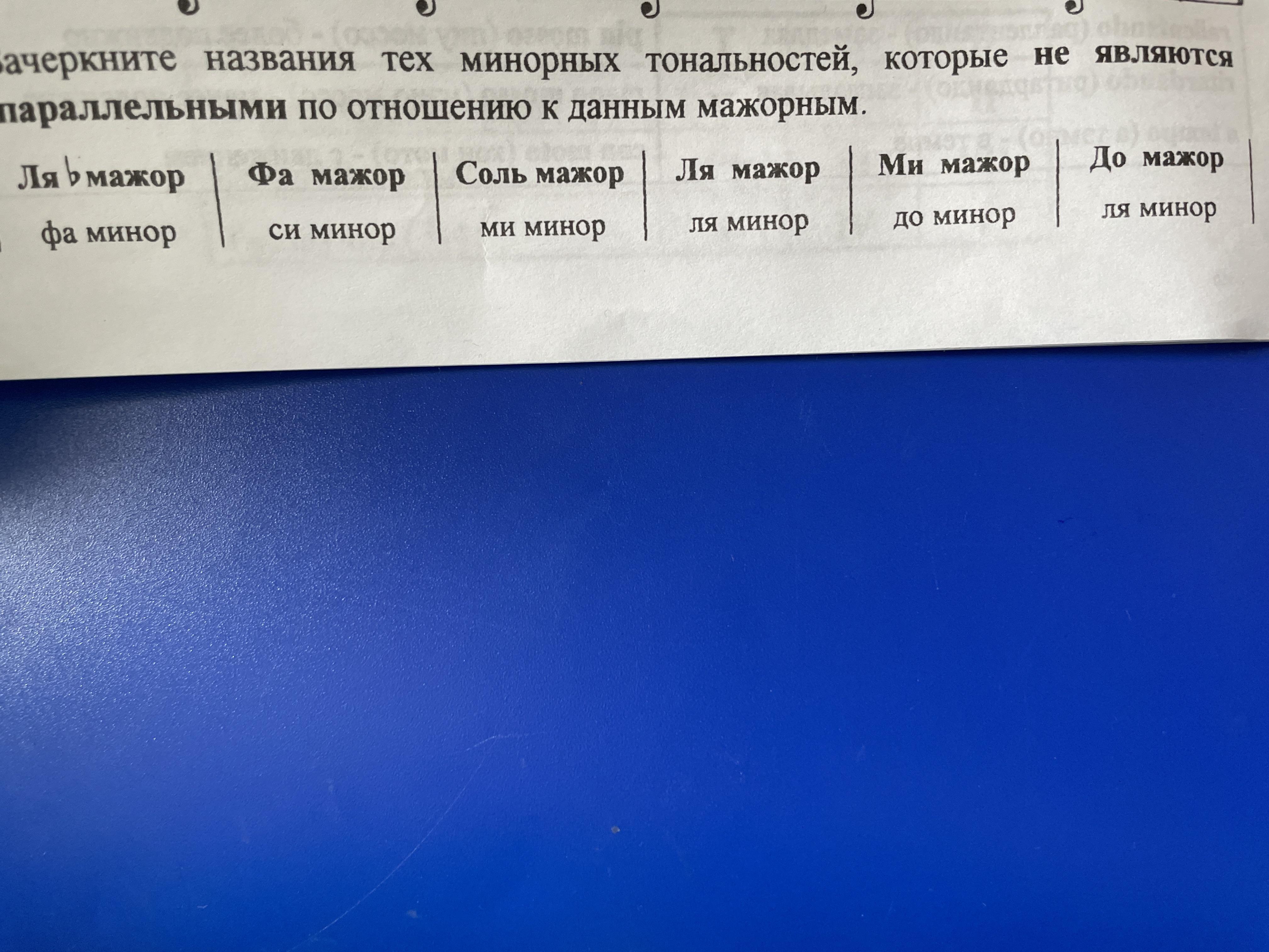 Пж помогите Зачеркните названия тех минорных тональности которая не является параллельными по отношению к данным мажорным
