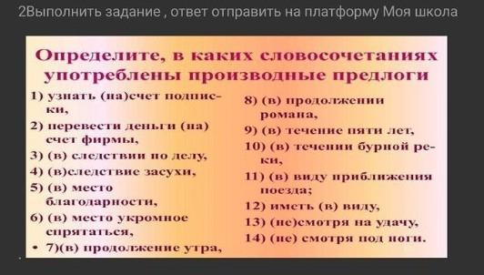 Ответ: Производные предлоги употреблены в следующих словосочетаниях: 1, 4, 5, 7, 9, 11, 13.