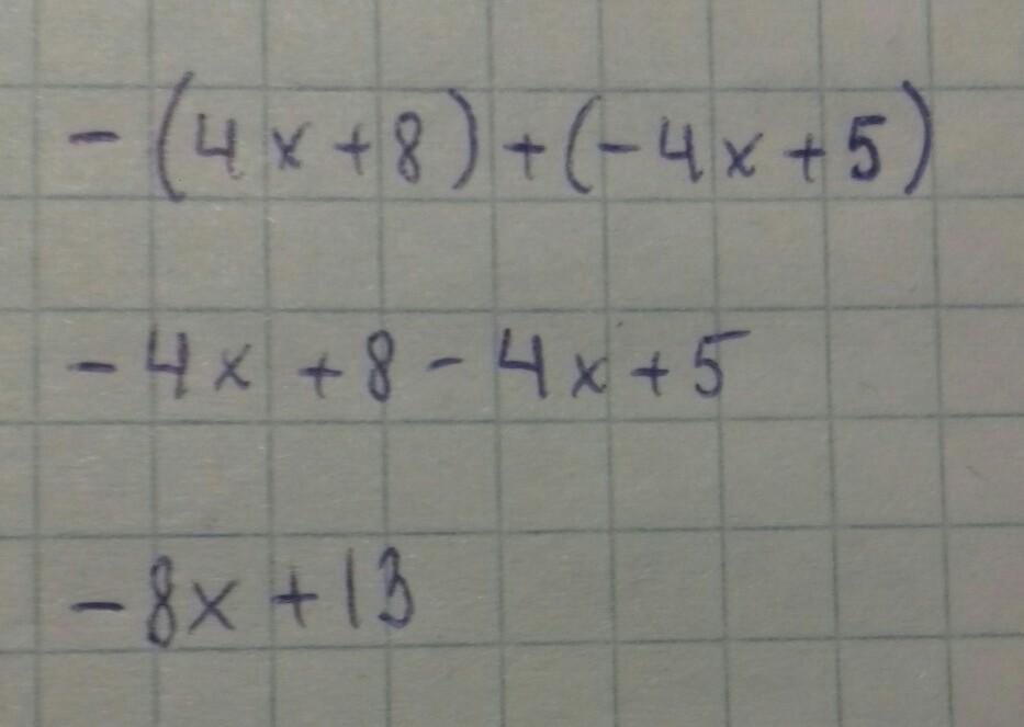 Спростіть вираз: - (4х +8) + (- 4х + 5)