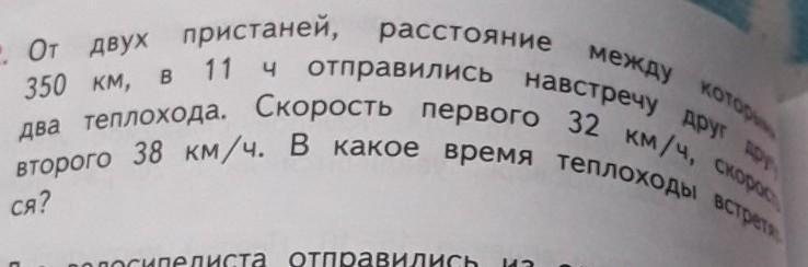 2) 350 : 70 = 5 (ч) - время, которое проплывут теплоходы до встречи;
