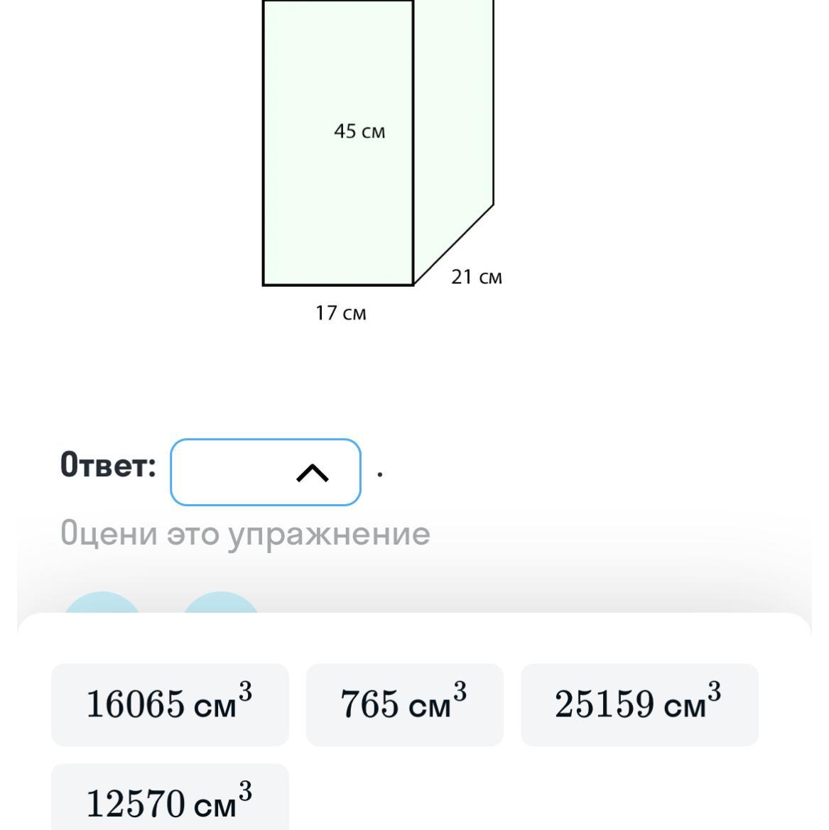V= 45*17*21= 16065 см³
