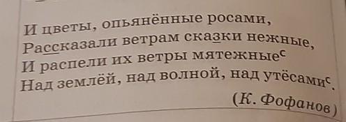 Смотри, цветы не могут быть опьянёнными росами и не могут рассказывать сказки, а ветры не могут распеть их, поэтому первые три предложения - метафора. Надеюсь я тебе помогла)
