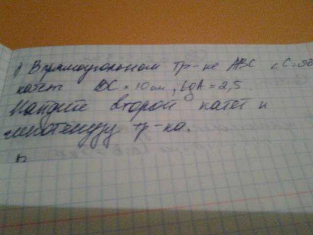 В прямоугольном ΔАВС, угол С=90, катет ВС = 10, tg A = 2,5.