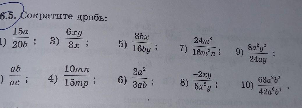 помогите решить пожалуйста,сократить дробь, все примеры кроме 1,2,3,5 ,то-есть надо решить начиная с 4 и тд