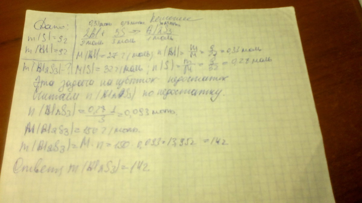 Смесь нагрели. Вычислите массу полученного сульфида алюминия. Ответ:14 г. Решите