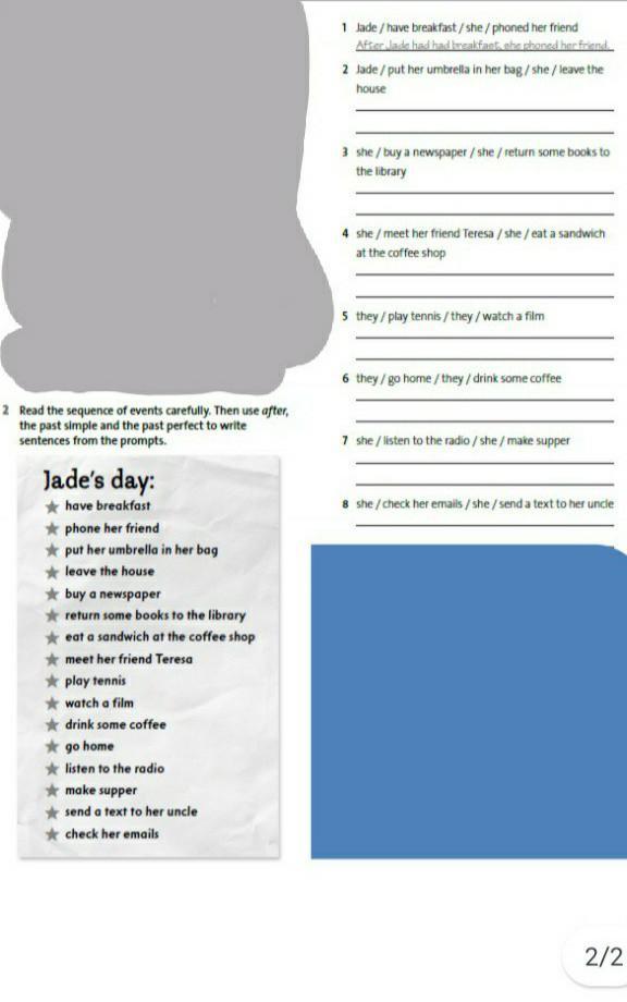 - After Jade had met her friend Teresa, she ate a sandwich at the coffee shop.