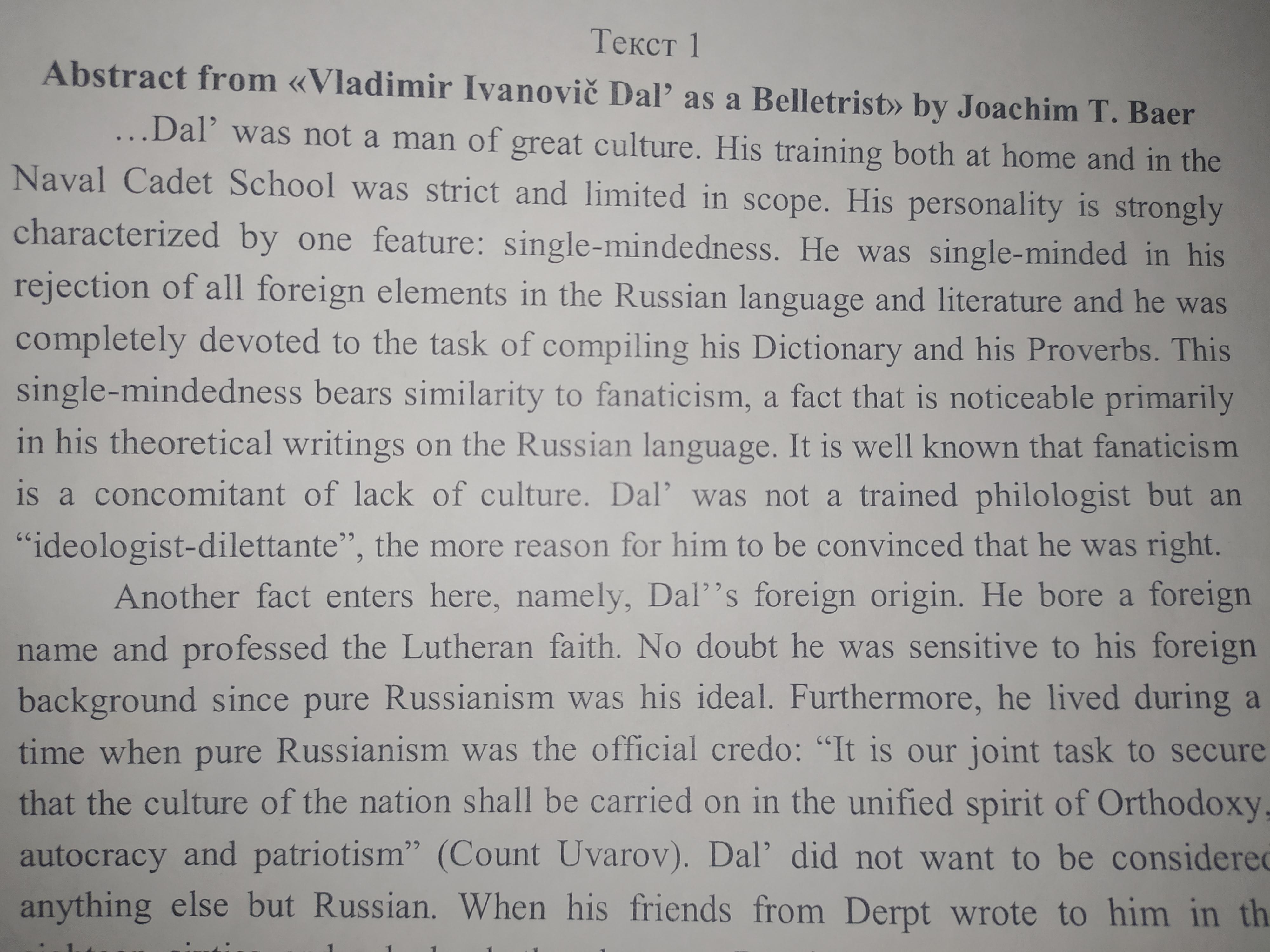 …Даль не был человеком высокой культуры. Его обучение как дома, так и в