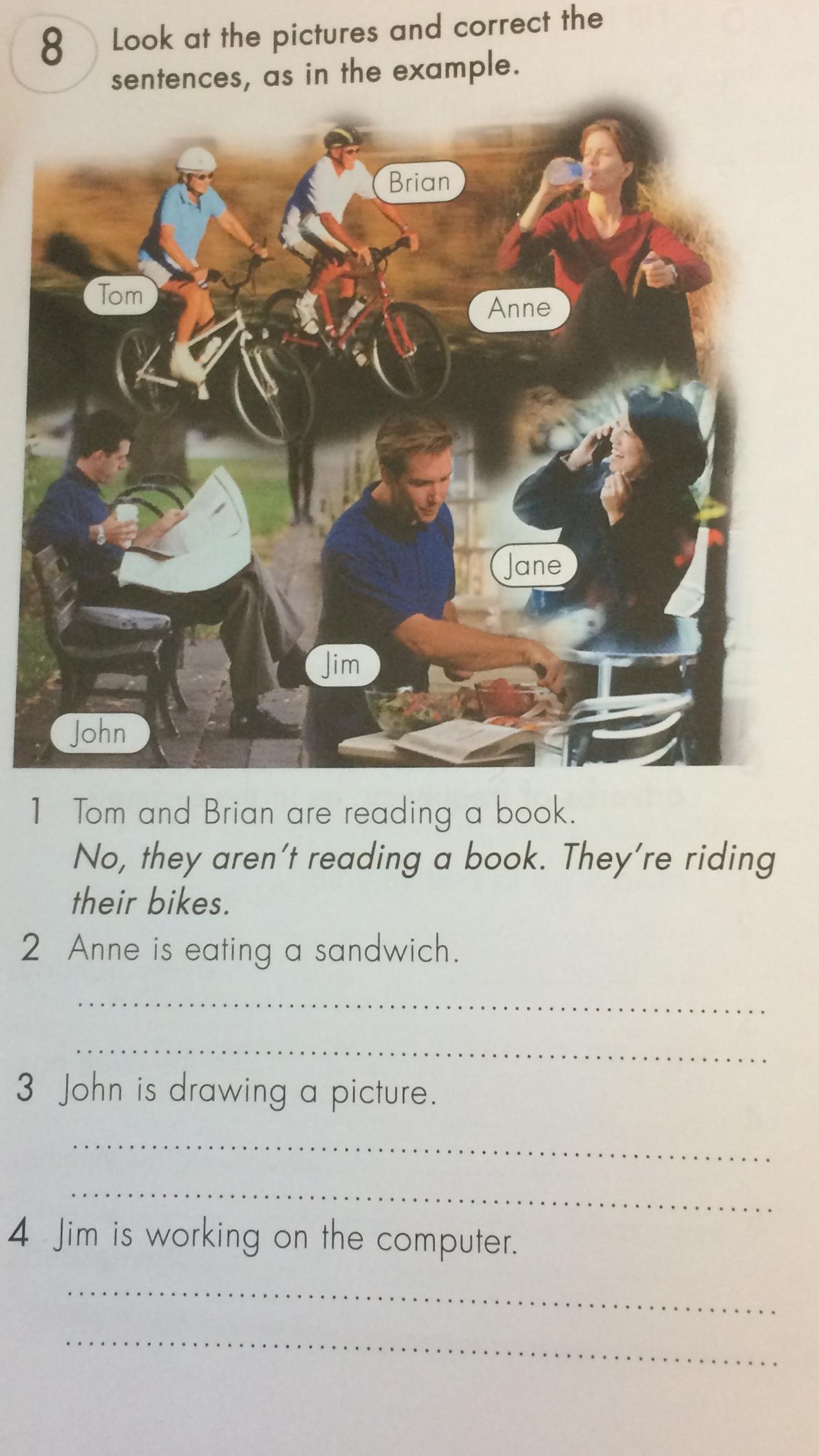 3. No, John isn't drawing a picture. He is reading a newspaper.
