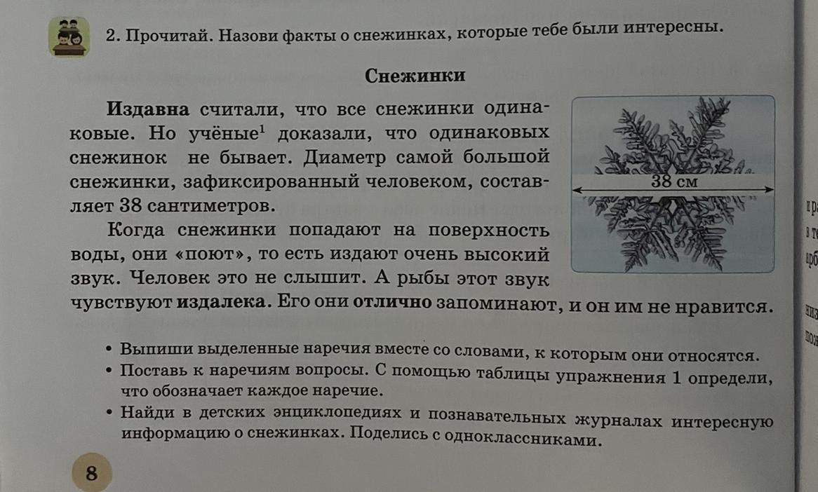 2. Прочитай. Назови факты о снежинках, которые тебе были интересны.