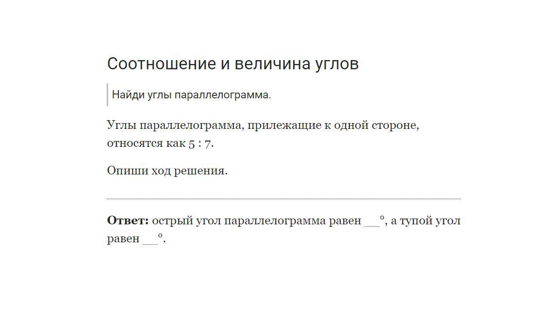 Сумма всех углов параллелограмма равна 360 градусов (24 части)