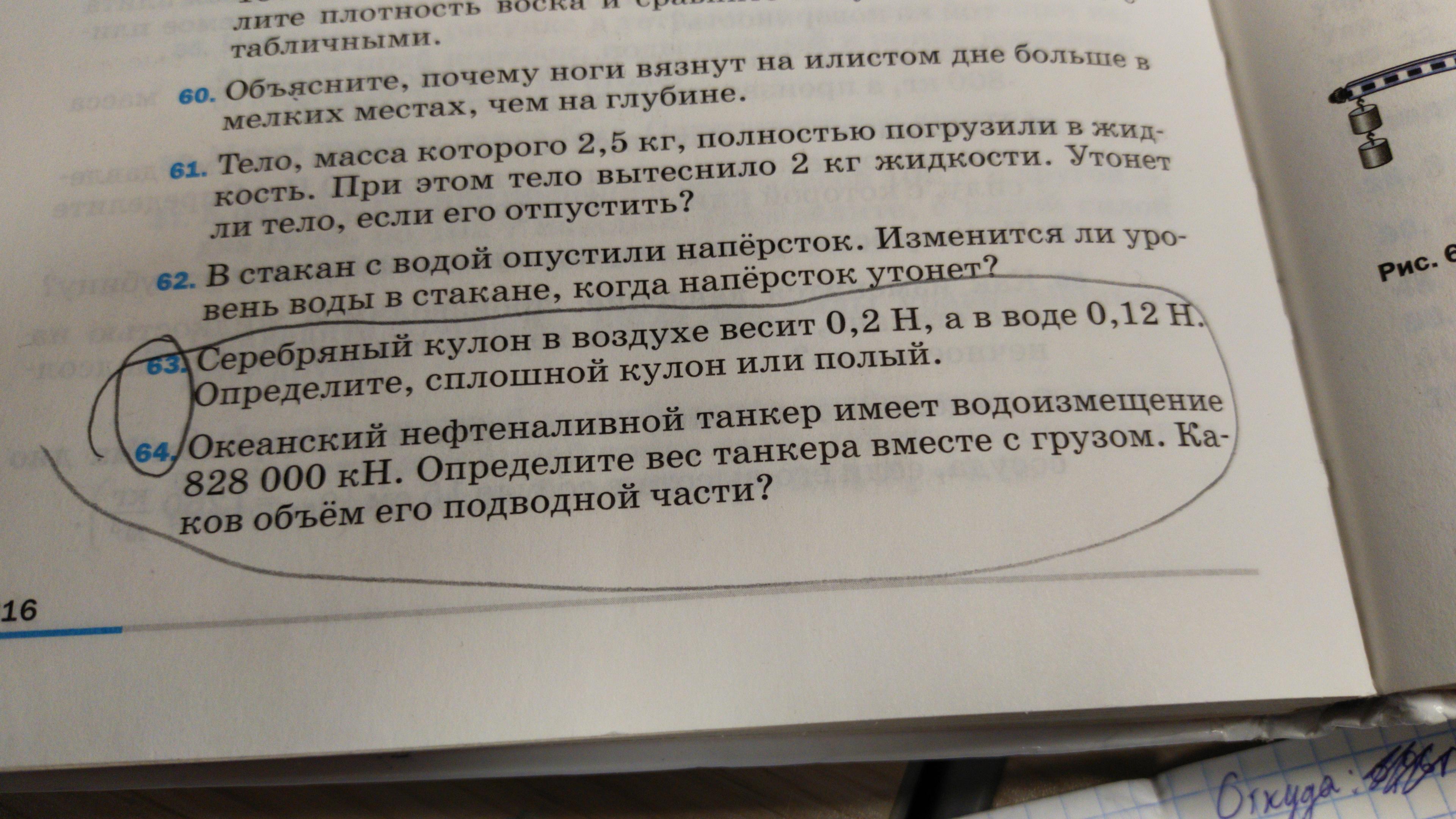 Вес сплошного кулона в воде был бы Р" = 0,2 – 0,019 = 0,18 Н.