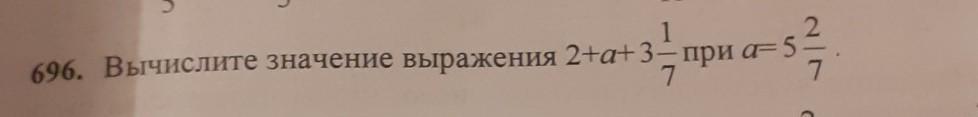 вместо а подставляем 5 2/7. 2 + 3 + 5 = 10. 1/7+2/7=3/7