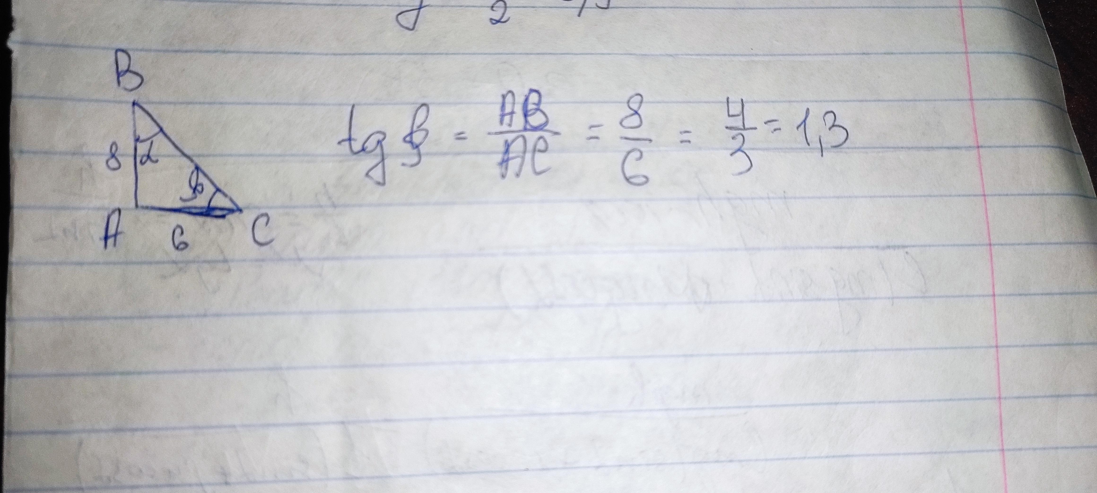 Катет прямокутного трикутника Дорівнює 6см і 8 см.Знайдіть тангенус кута прилеглого до меншого катета