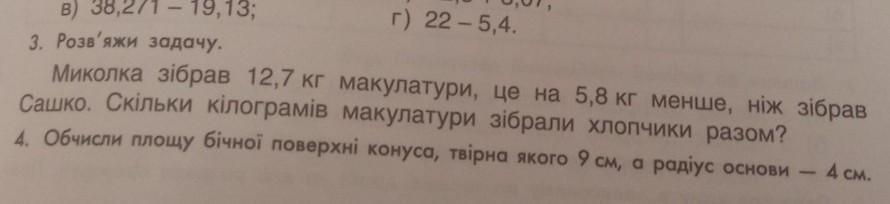 12.7 + 5.8 = 18.5 кг (стільки макулатури зібрав Сашко) 12.7 + 18.5 = 31.2 кг ( стільки макулатури зібрали хлопці разом)