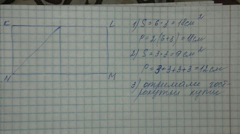 2) Поділи прямокутник KLMN на два квадрати. Знайди