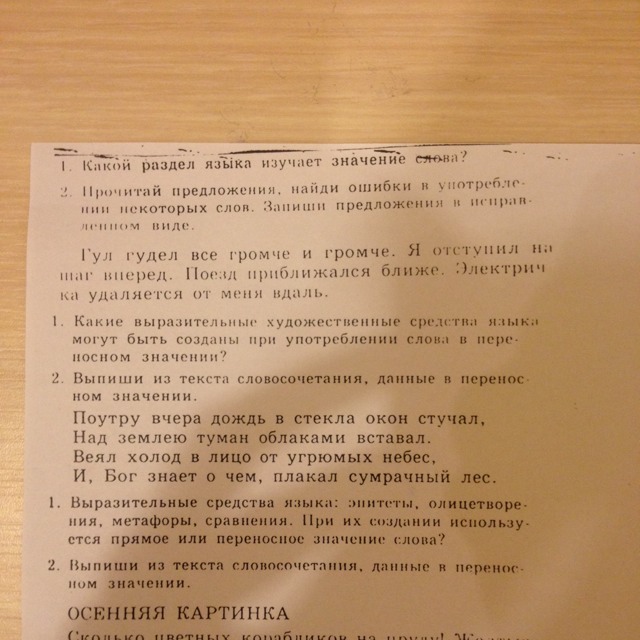 первый листок:1)лексика,2)поезд приближается все ближе