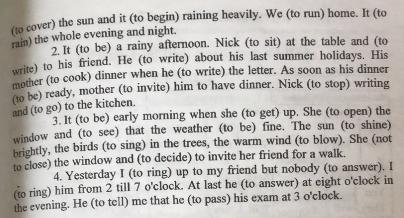 - It was a rainy afternoon. Nick was sitting at the table and writing to his friend. He was writing about his last summer holidays. His mother was cooking dinner when he wrote the letter. As soon as his dinner was ready, mother invited him to have dinner. Nick stopped writing and went to the kitchen.
