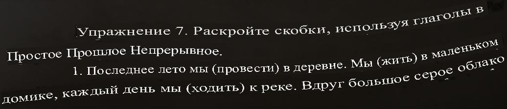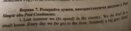 - Last summer we spent in the country. We lived in a small house. Every day we went to the river. Suddenly a big grey cloud covered the sun and it began raining heavily. We ran home. It was raining the whole evening and night.