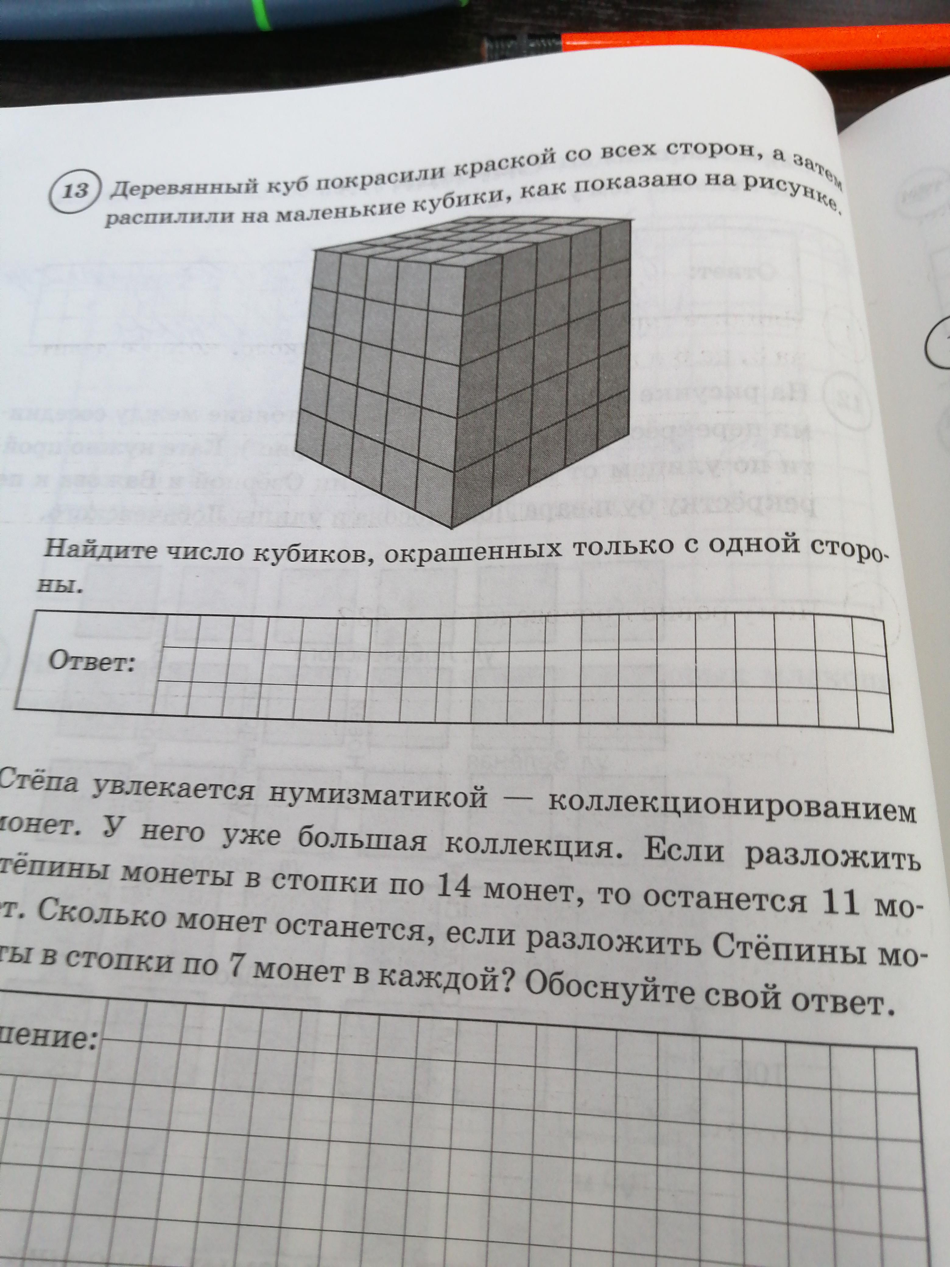 Деревянный куб покрасили краской со всех сторон, а затем распилил на маленькие кубики, как показано на рисунке найдите число кубиков, окрашенных только с одной стороны