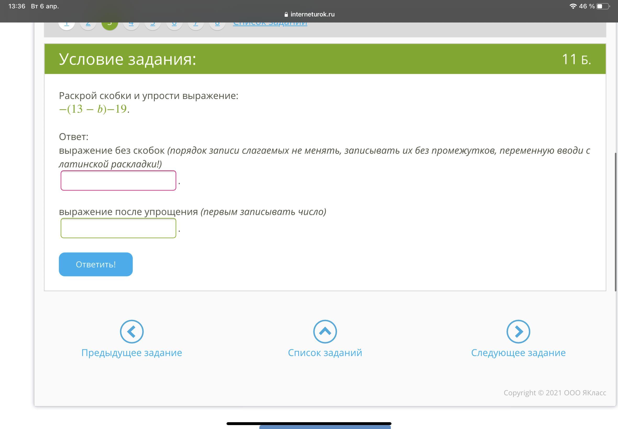 выражение без скобок (порядок записи слагаемых не менять, записывать их без промежутков, переменную вводи с латинской раскладки!)
