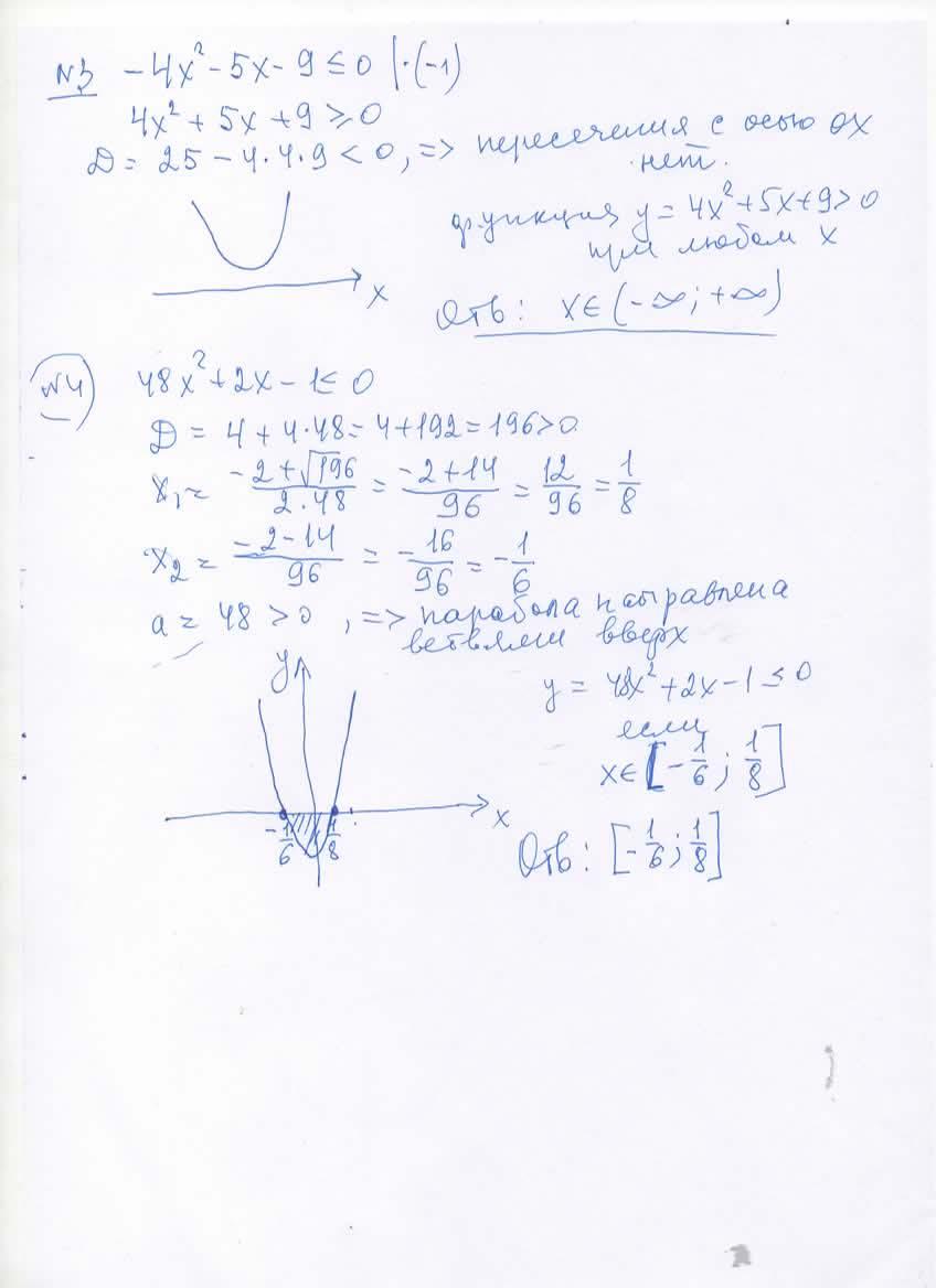 Ответ: 3)х-любое 4) [-1/6; 1/8]