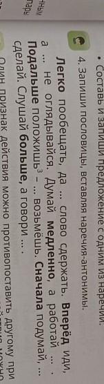 Легко-тяжело, вперед-назад, медленно-быстро, подальше-ближе, сначала - в конце, больше-меньше. И все слова эти подчеркни -. -. -. -.
