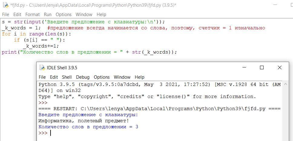 print("Количество слов в предложении = " + str(_k_words));