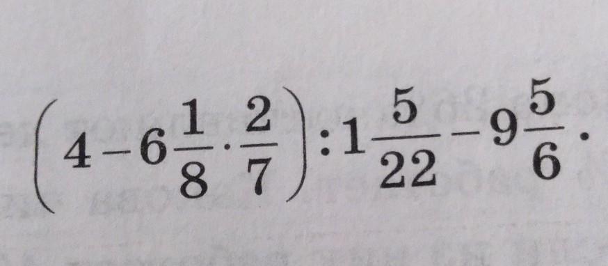 (4-6 1/8×2/7):1 5/22-9 5/6=
