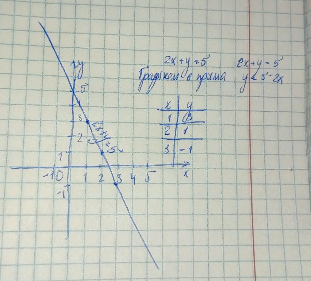 Розв'язання до завдання на фото. Щоб побудувати графік потрібно мати дві точки. Виразивши з рівняння y, склади табличку значень для точок. Вигадавши x, ти повинен підставити його у рівняння з у. Познач точки на графіку і проведи через них пряму. Графік готовий.