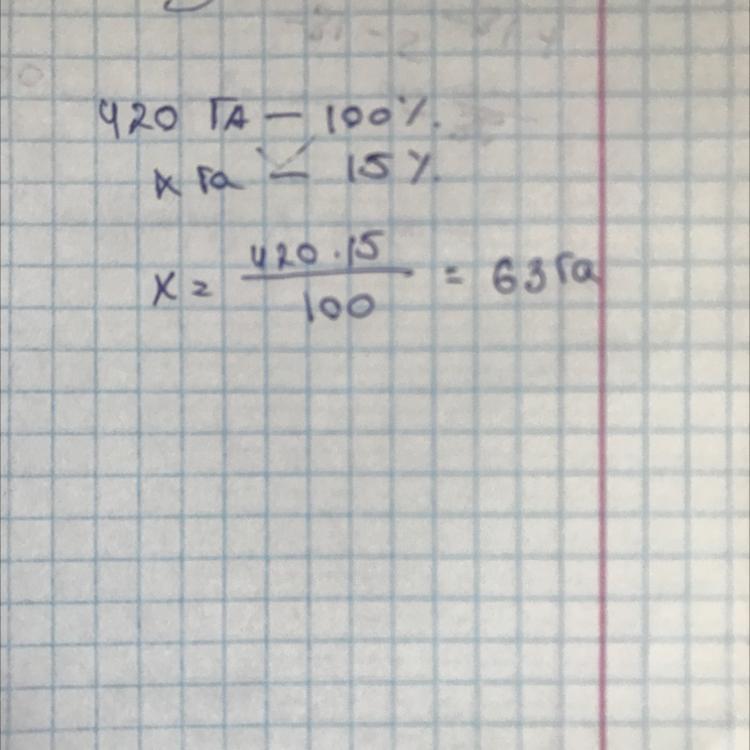 Площа поля становить 420 га.Житом засіяли 15% поля.Скільки гектарів засіяли житом?