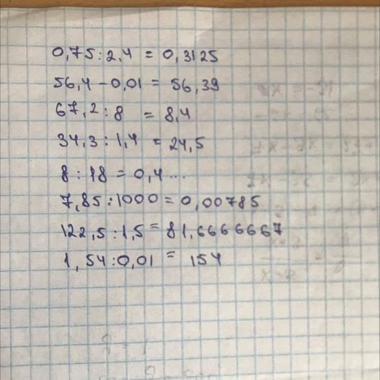 1) 0,75 : 2,4 2) 56,4 -0,01 '3) 67,2 : 8 4) 34,3 : 1,4