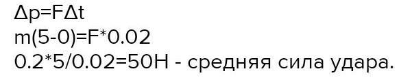 нерухоме тіло масою 200 г після удару , який тривав 0,02 с ,набуває швидкості 5м/с. знайти силу удару. Срочноооо