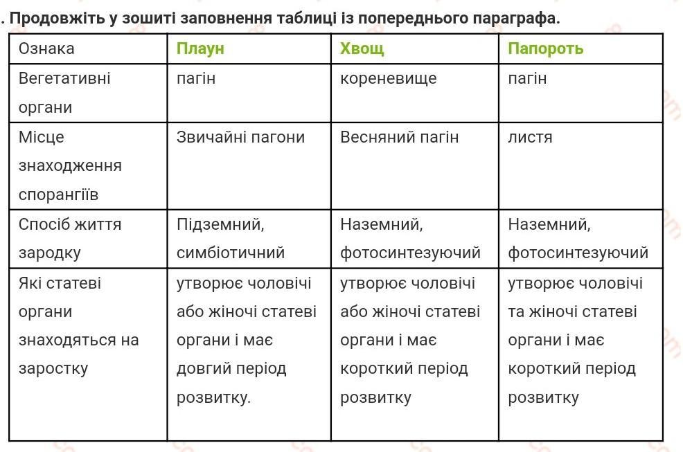 1. Продовжіть у зошиті заповнення таблиці із попереднього параграфа.