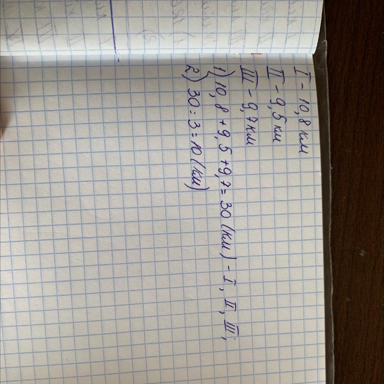 За первый час лыжник прошел 10,8 км, за второй 9,5 км и за третий 9,7 км. Сколько