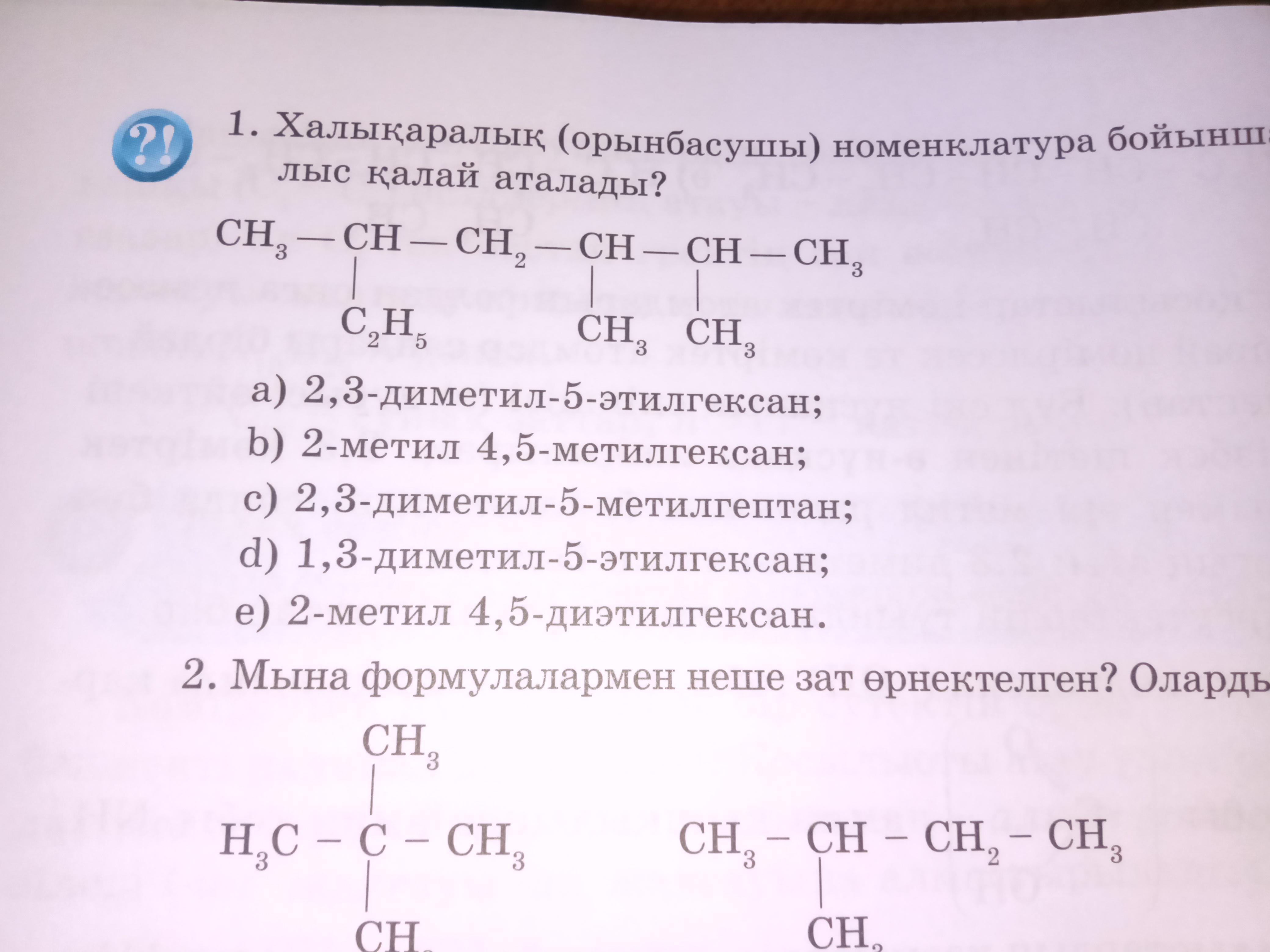 длинная цепь состоит из 6-ти атомов углерода, поэтому гексан
