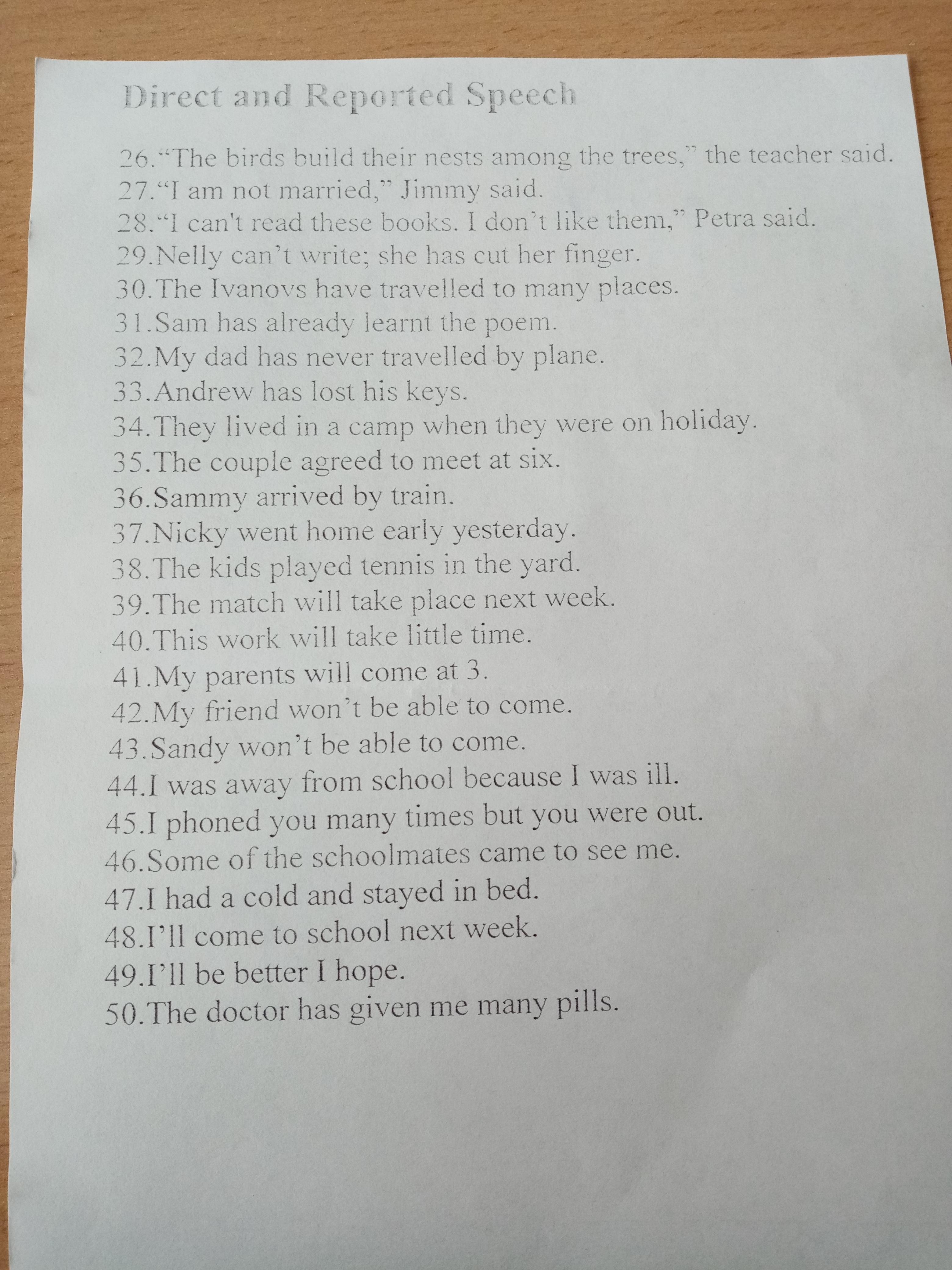 Можете пожалуйста перевести и в косвенную речь, пожалуйста. Хотя бы несколько предложений