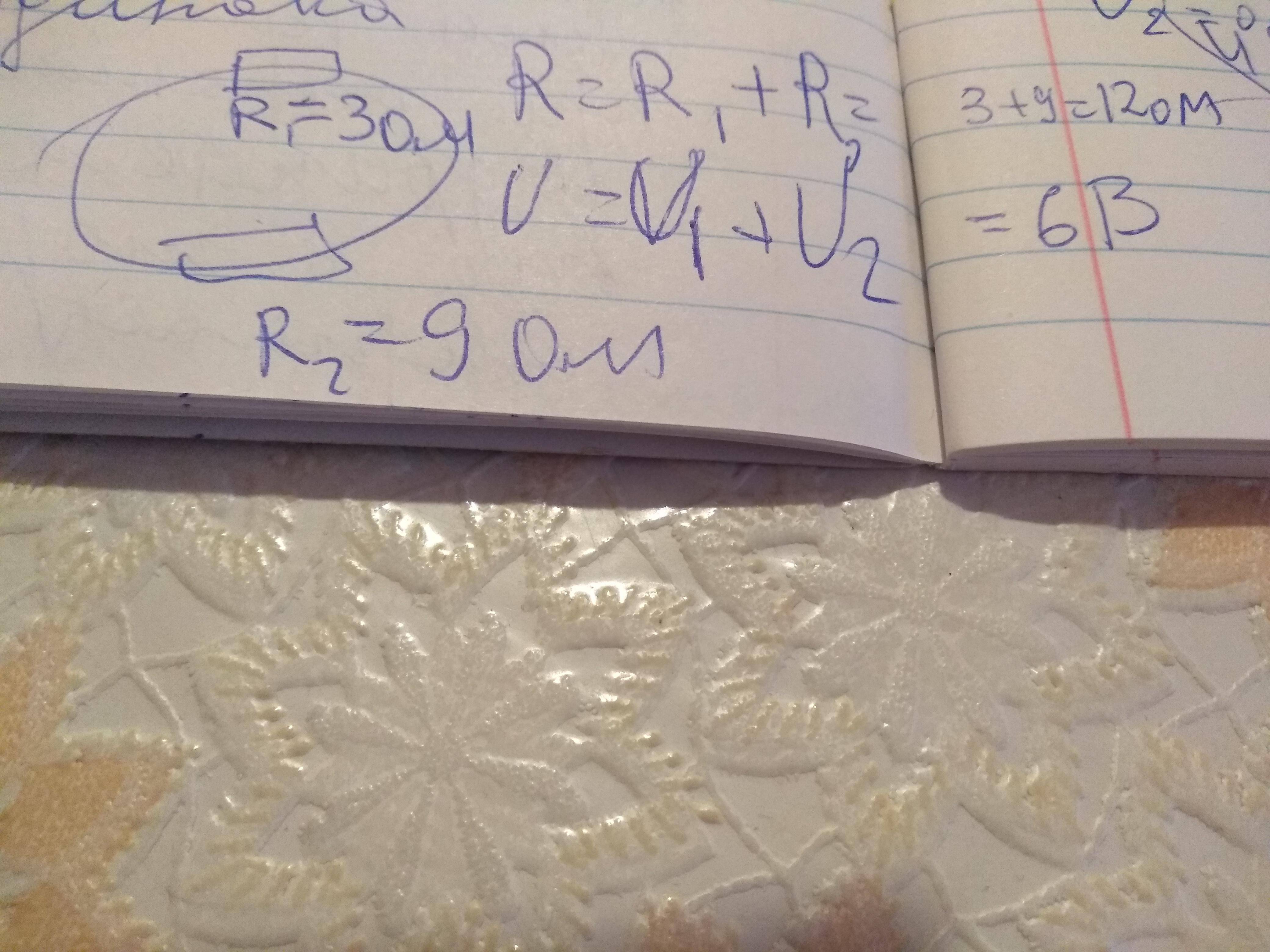 послідовно з'єднаних резисторів опорами 3 Ом i9 Ом. Напруга на клемах