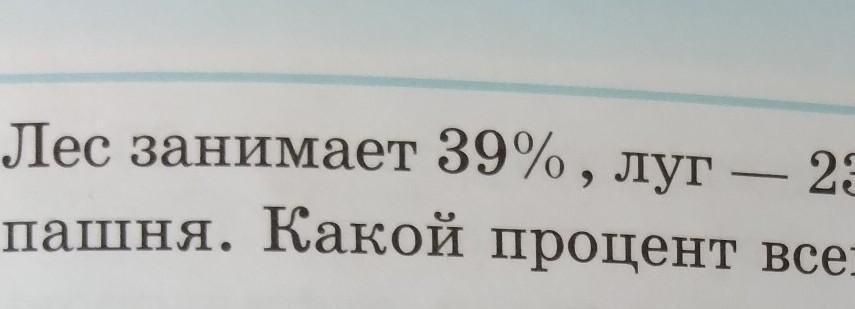 1. Узнаем какой общий процент поля занимает лес и луг. Для этого, к проценту леса прибавим процент луга: