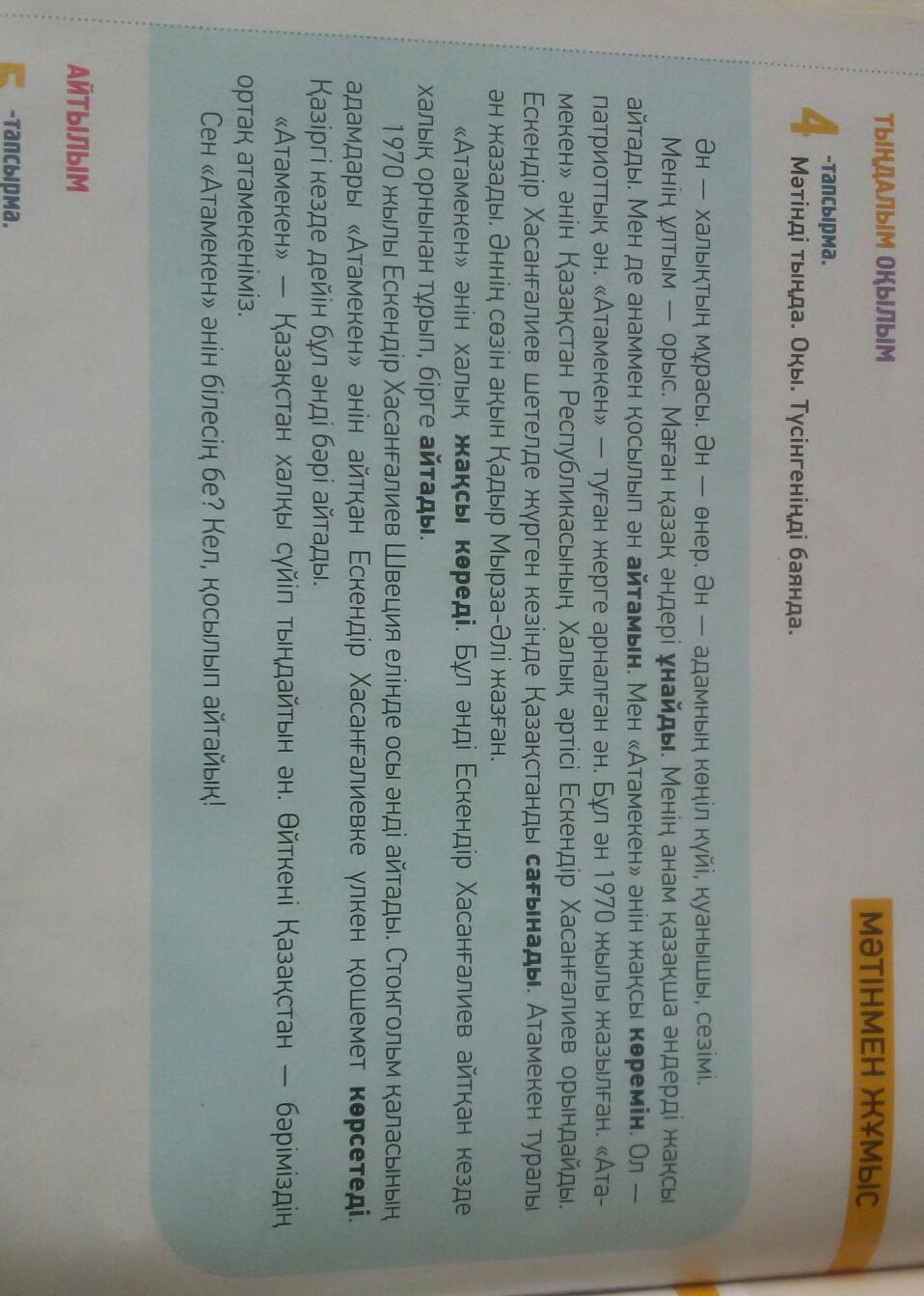 ответ к 3 вопросу: Халық "Атамекен" әнің естігенде орынынан тұрып, бірге айтады.